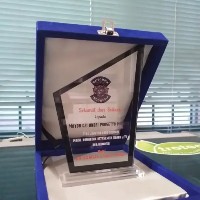 This premium appreciation plaque is designed with an elegant modern look, presented in a luxurious blue velvet box. The plaque features custom engraving to honor achievements, milestones, or special recognition. Made from high-quality clear acrylic with sharp printing and a sturdy base, it reflects prestige and respect. Perfect as a corporate award, military recognition, or commemorative gift for special occasions.